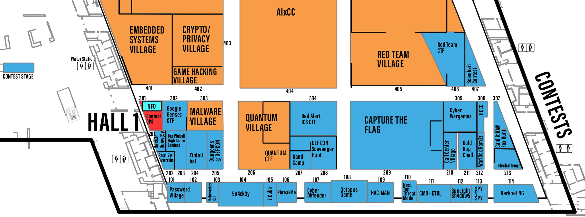 LV Strip Overview – Closeup LVCCW_L1_Full – L1_North – L1_South L1_Reg – L1_Hall1 – L1_Hall2 – L1_Hall3 – L1_Hall4 LVCCW_L2_Full – L2_North – L2_West – L2_East LVCCW_L3_Full – L3_North – L3_South LVCCN_L2 One page DEF CON 34 map Las Vegas Convention Center – Virtual Tour The One! – A consolidated, one page, multi file format, schedule of DEF CON events | ||||